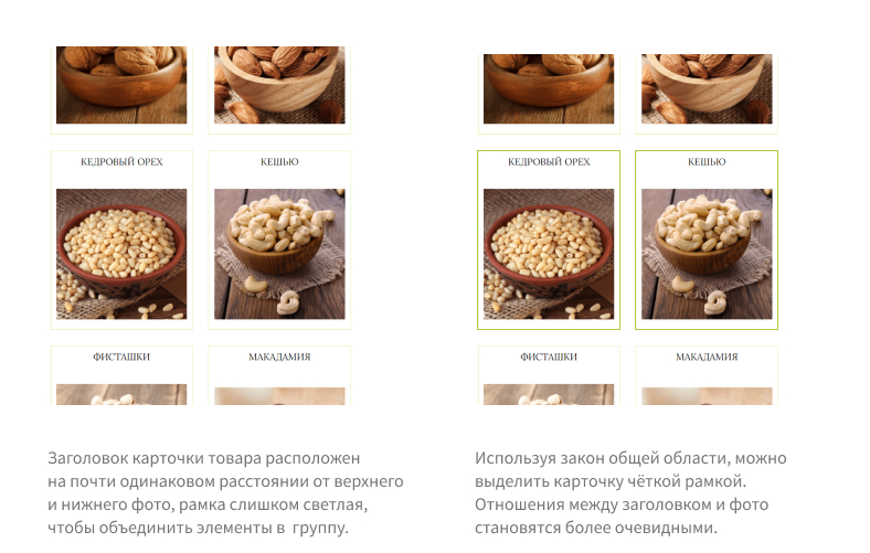 Законы близости и общей области помогают правильно группировать объекты и выстраивать иерархию.